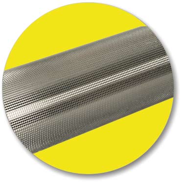 5) Carborundum abrasive, the conventional peeling element in a roller peeler. The grid on first and second section of the peeling element can be different. This peeling element type is good for pre-peeling.
